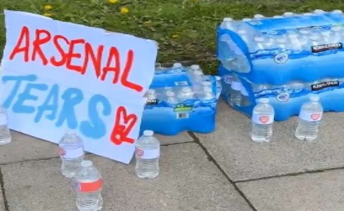 Πιο συγκεκριμένα έστησαν δεκάδες μπουκάλια με εμφιαλωμένο νερό, τα οποία έγραφαν: «Δάκρυα της Άρσεναλ», θέλοντας με αυτόν τον τρόπο να τους δείξουν πως μετά το τέλος του αγώνα, εκείνοι θα κλαίνε ενώ αυτοί θα γελάνε.